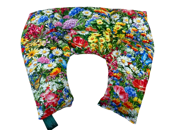 This horseshoe-shaped Cherry-Pit-Pac is ideal for the cervical area. It combines firm support with the benefit of heat or cold therapy. This style is a bit heavier and provides some pressure on the neck and shoulders.