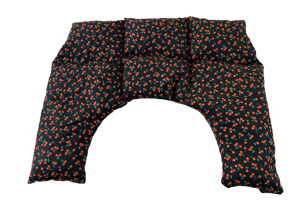 Aches and pain in the neck and shoulder area are very common. Our Cherry-Pit-Pac Collar is ideal for relieving pain in those areas. This design reaches across the shoulders, and down to the shoulder blades about 5 inches. Seamed sections keep the cherry gets evenly distributed. The larger size adds another section and enables it to be draped over the body, keeping in place as you move about.